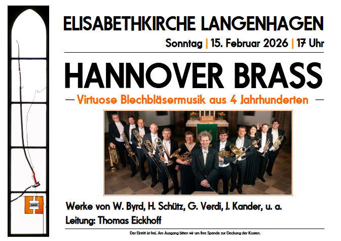 Auch im 26. Jahr seines Bestehens gastiert das Blechbläserensemble Hannover Brass wiederauf Einladung der Elisabethkirche in Langenhagen.